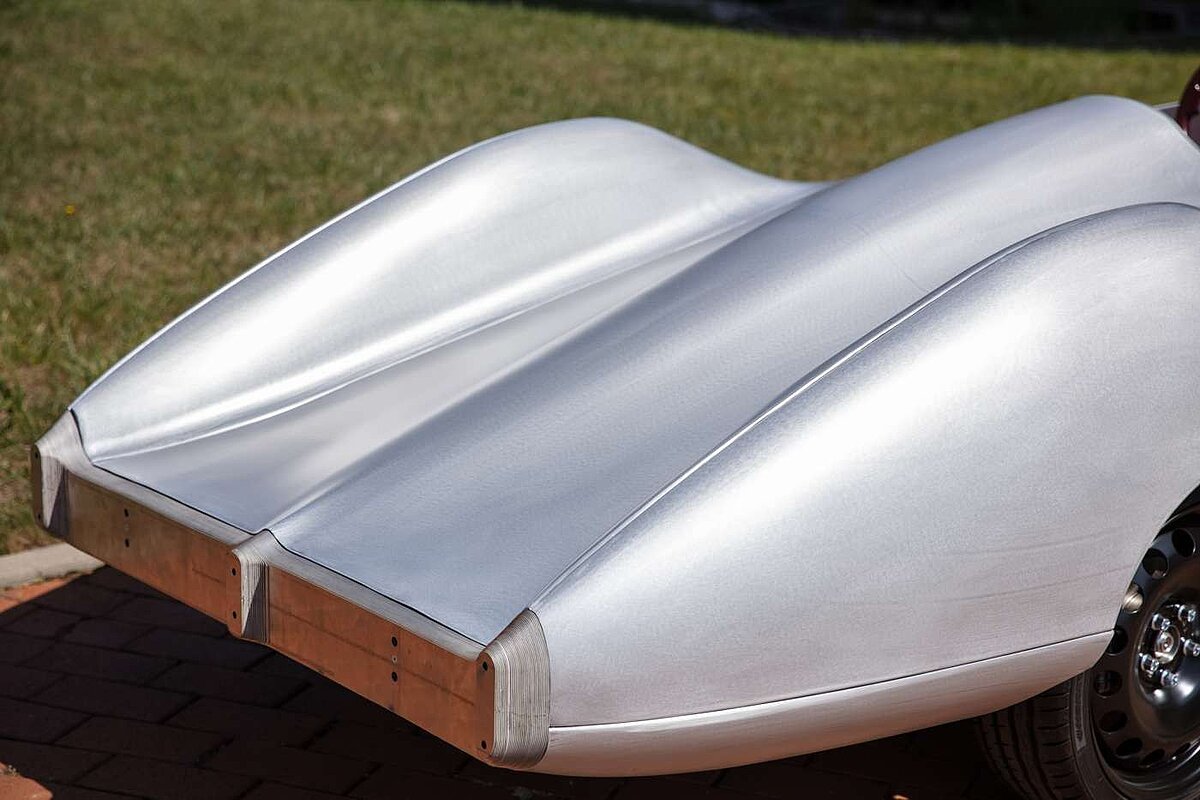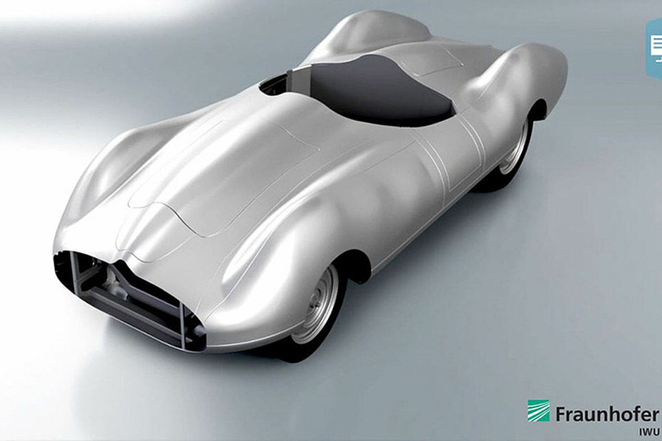 Wie ihr Ansatz praktisch funktioniert, zeigen die Fraunhofer-Forscher anhand des Exponats "Silberhummel" - ein stromlinienförmiges Konzeptfahrzeug, das auf Plänen eines nie gefertigten Rennwagens des Automobilherstellers Horch basiert. Das Fraunhofer IWU rekonstruierte das Fahrzeug und fertigte die Außenteile des Modells. Die Karosserie besteht dabei aus Benchmark-Teilen, die mit verschiedenen am Institut entwickelten Umform-, Füge- und generativen Fertigungstechnologien für kleine Stückzahlen hergestellt wurden.