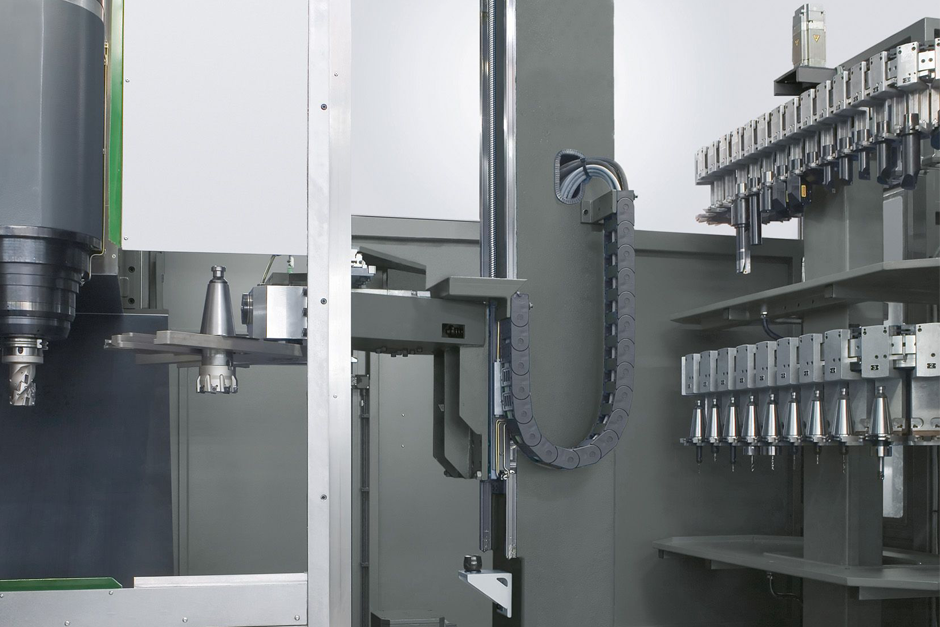 - Werkzeugmagazin steht geschützt außerhalb des Arbeitsraumes