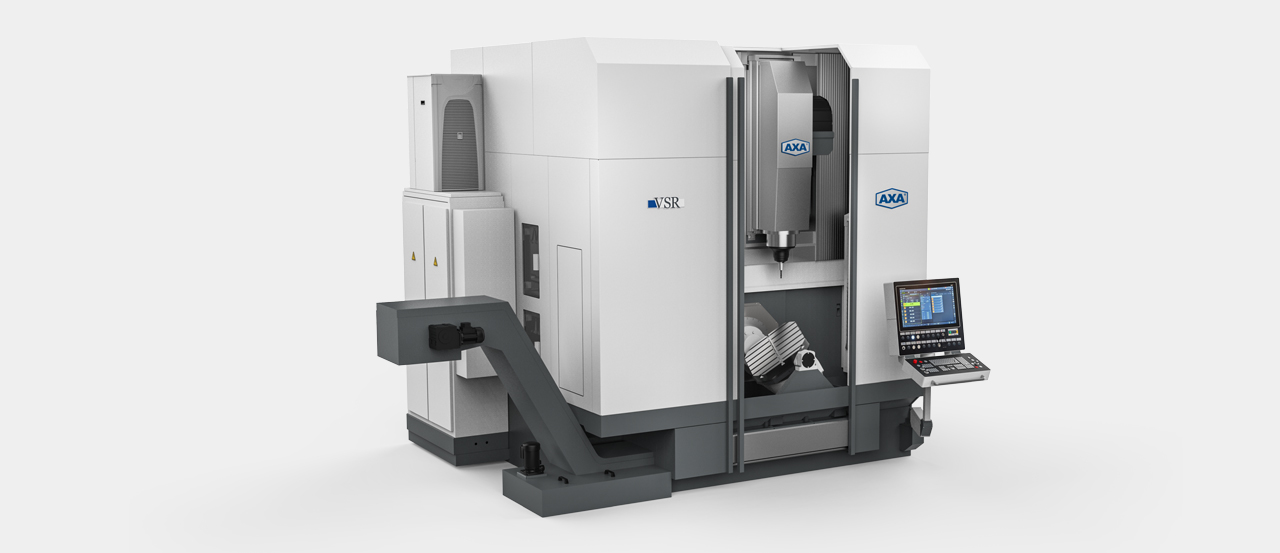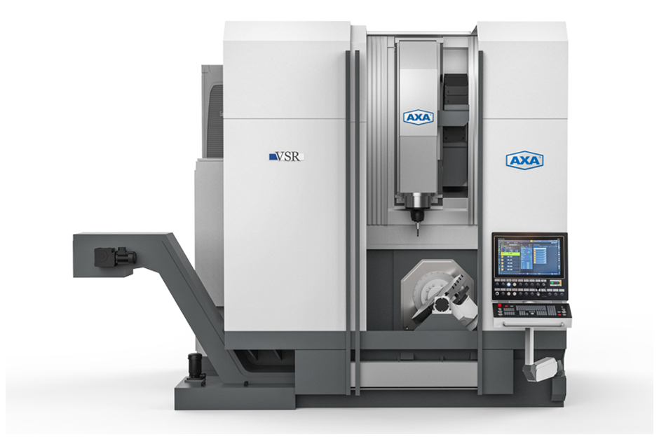 Das Fahrständer-Bearbeitungszentrum VSR 2 ist standardmäßig mit einem um die Y-Achse schwenkenden 2-Achs-Schwenkrundtisch ausgerüstet. Im Gegensatz zum sonst üblichen Schwenken um die X-Achse erlaubt diese Lösung dem Anwender während der Werkstückbearbeitung einen freien Blick auf mögliche Störkonturen.